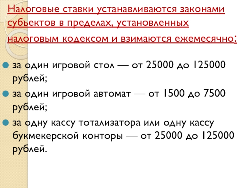Слайд 19Налоговые ставки устанавливаются законами субъектов в пределах, установленных налоговым кодексом