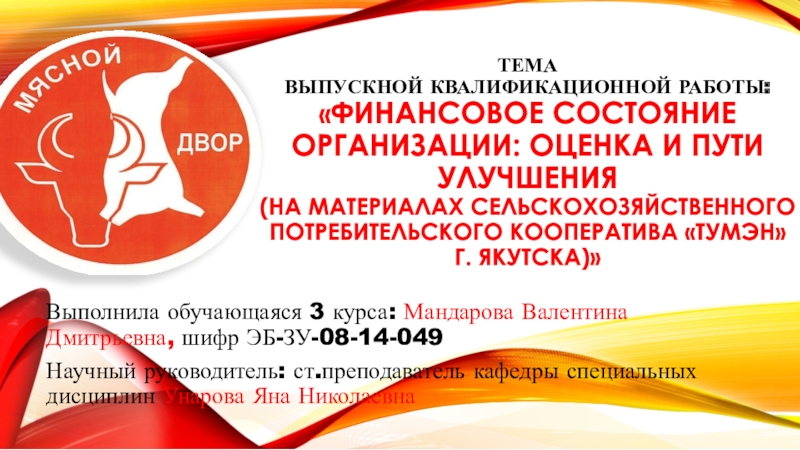 3 курса: Мандарова Валентина Дмитрьевна, шифр ЭБ-ЗУ-08-14-049Научный руководитель: ст.преподаватель кафедры специальных дисциплин Унарова Яна Николаевна