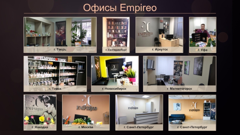 Hugo Boss и др., а также косметику исключительно на натуральных компонентах.К настоящему времени, компания успешно завоевывала позиции на рынке, поддерживая огромное количество клиентов В БОЛЕЕ ЧЕМ 11 СТРАНАХ МИРА И В БОЛЕЕ ЧЕМ 100 ГОРОДАХ РОССИИ.