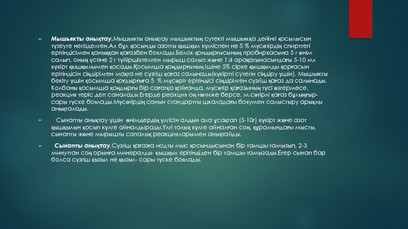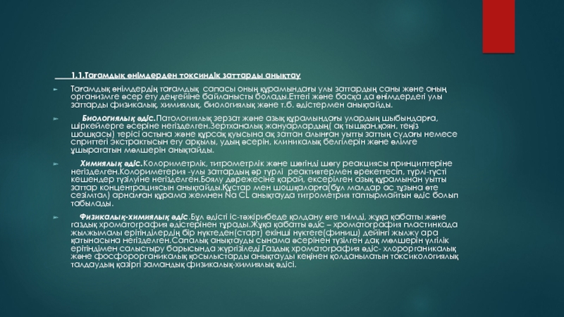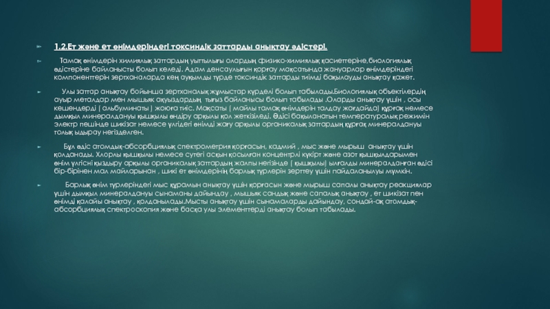 Слайд 81.2.Ет және ет өнімдеріндегі токсиндік заттарды анықтау әдістері.