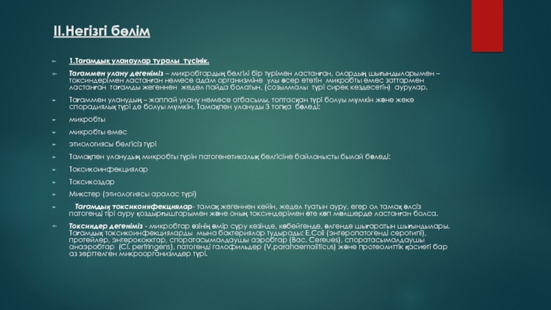Тамақпен уланудың микробты түрін патогенетикалық белгісіне байланысты былай бөледі: