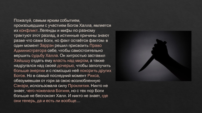 Слайд 14Пожалуй, самым ярким событием, произошедшим с участием Богов Халла, является