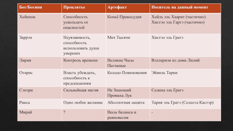 Проклятие, тем сильнее должен быть носитель. Так, например, проклятие Заррэна требует огромных запасов магии и выносливости, а проклятие Риксы и вовсе стало подвластно лишь единственному Воплощению Богини за всю историю Халла – Тарии. Интересно, почему?..