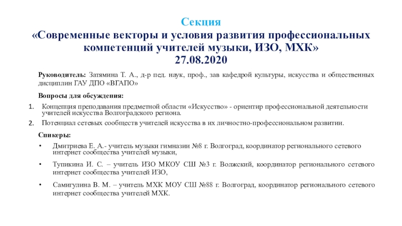 кафедрой культуры, искусства и общественных дисциплин ГАУ ДПО «ВГАПО»Вопросы для обсуждения: