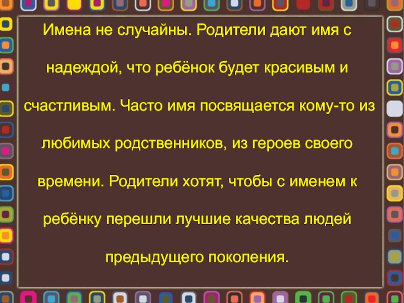 интересует каждого человека. Так было всегда. Каждое имя имеет своё