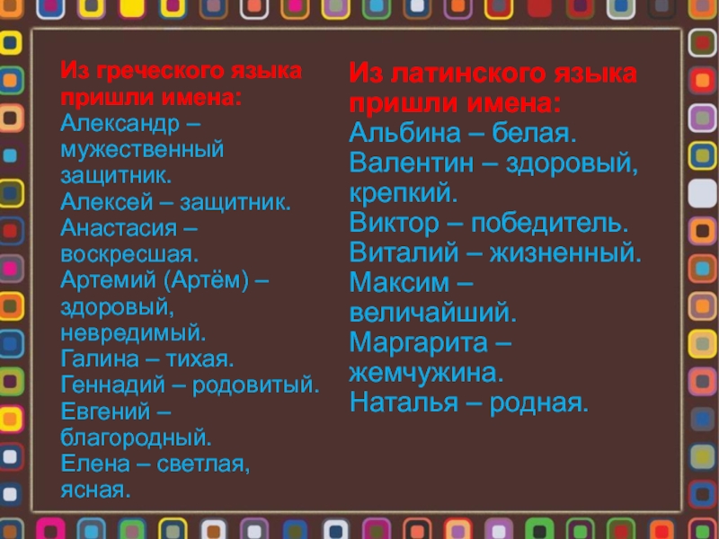 значение, о котором, к сожалению, не все знают, поэтому мы решили собрать материал о происхождении и значении имен.