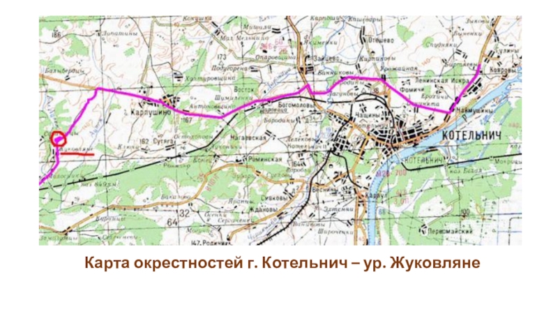 Слайд 2Карта окрестностей г. Котельнич – ур. Жуковляне