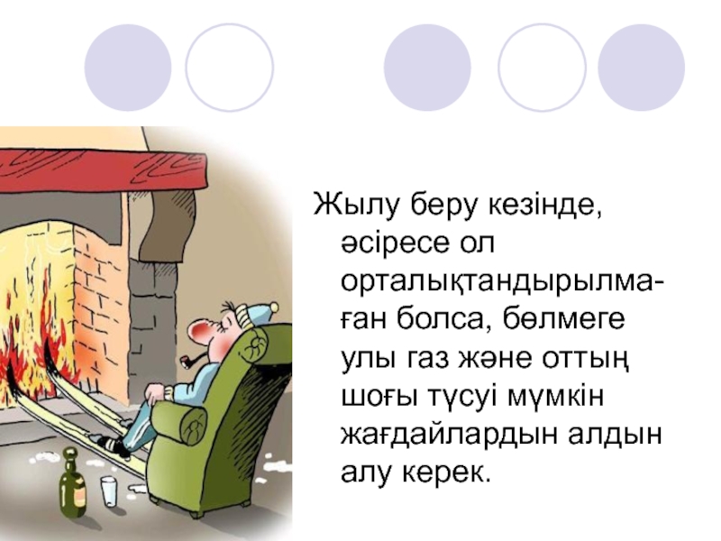 Слайд 13Жылу беру кезінде, әсіресе ол орталықтандырылма-ған болса, бөлмеге улы газ