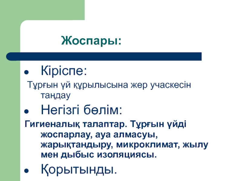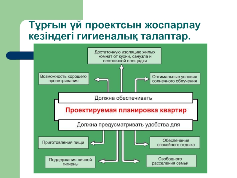 Слайд 8Тұрғын үй проектсын жоспарлау кезіндегі гигиеналық талаптар.