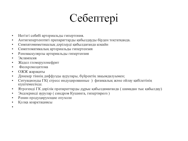 Негізгі себебі артериальды гипертония.