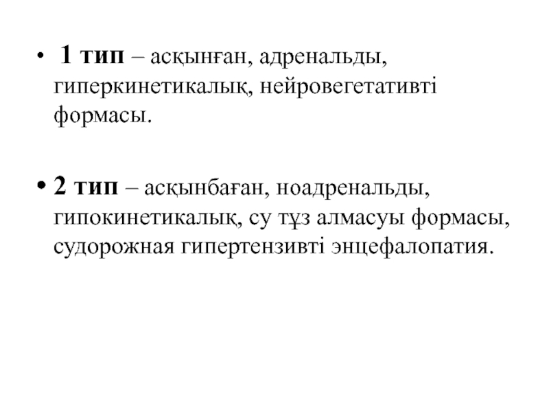 Слайд 8 1 тип – асқынған, адренальды, гиперкинетикалық, нейровегетативті формасы.