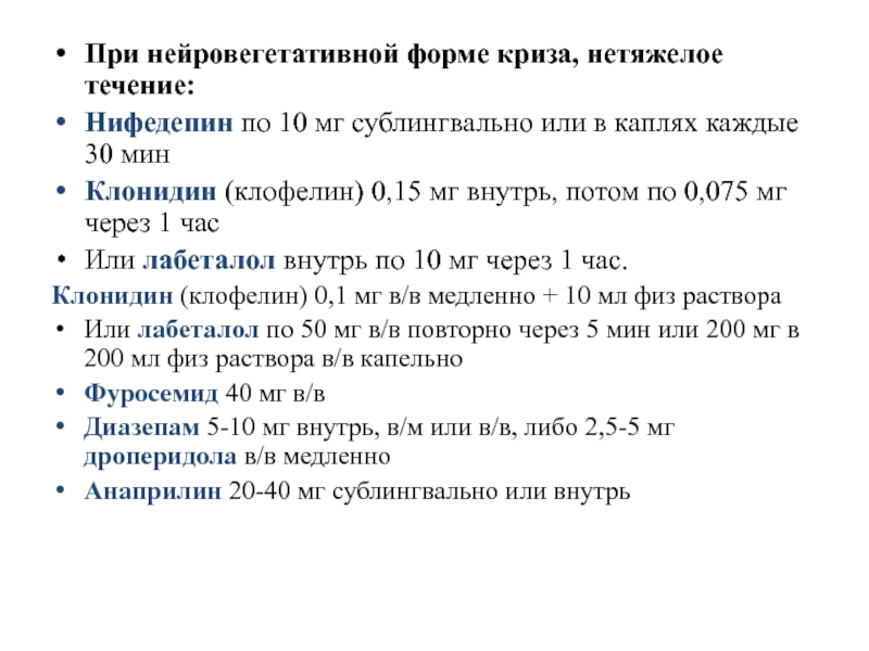 Слайд 25При нейровегетативной форме криза, нетяжелое течение: