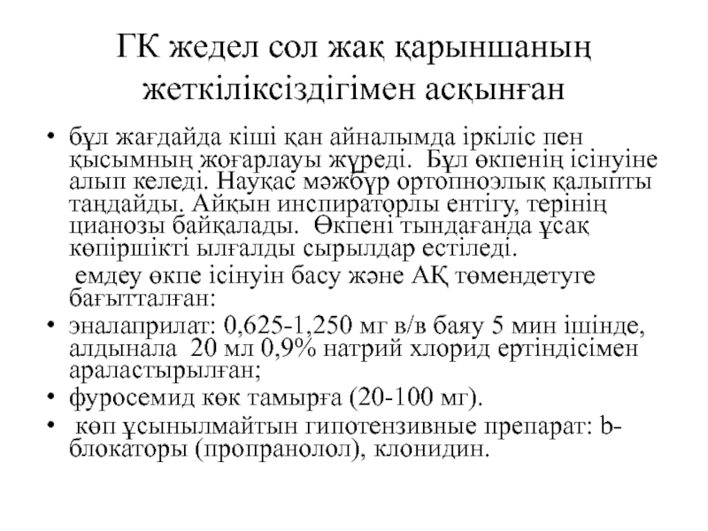 Слайд 21ГК жедел сол жақ қарыншаның жеткіліксіздігімен асқынған