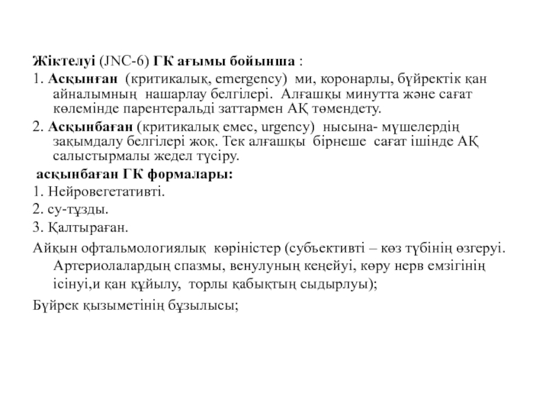 4.Дамыған асқынуды емдеу және гипотензивті препараттарды таңдауда ажыратпалы қарау.