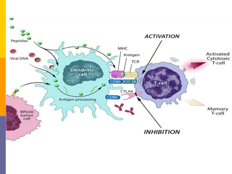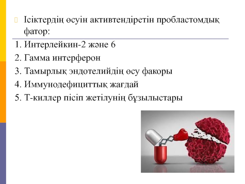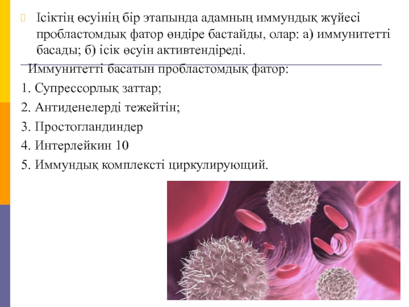 Слайд 13Ісіктің өсуінің бір этапында адамның иммундық жүйесі пробластомдық фатор өндіре