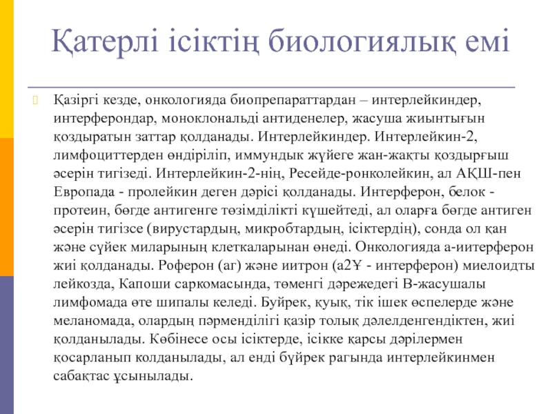 Слайд 18Қатерлі ісіктің биологиялық емі