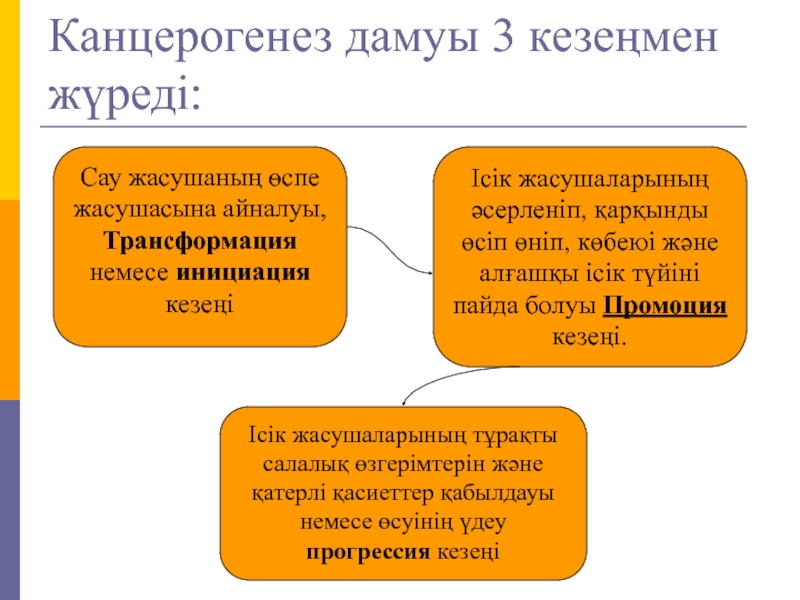 Слайд 6Канцерогенез дамуы 3 кезеңмен жүреді: