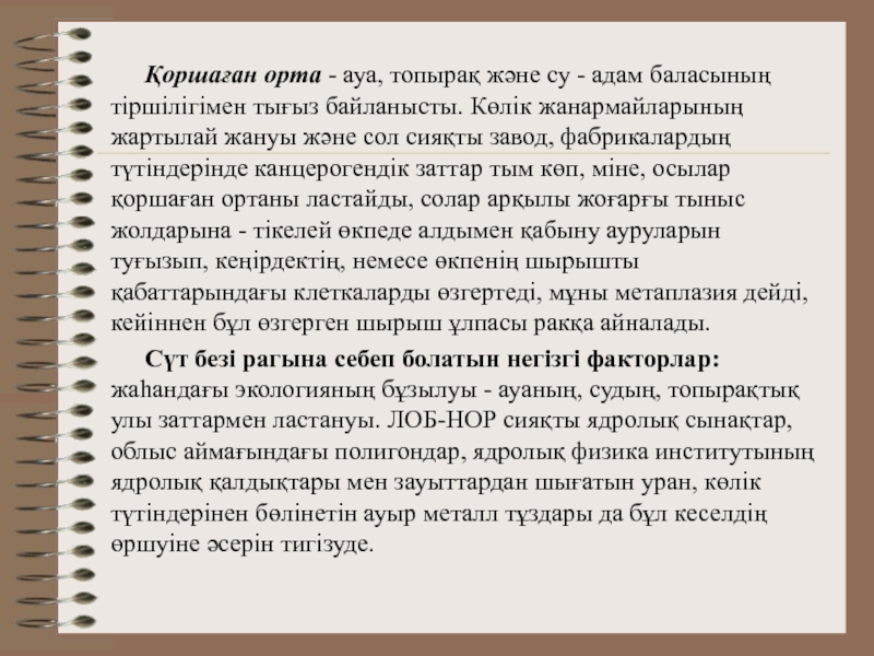 Слайд 8Қоршаған орта - ауа, топырақ және су - адам баласының
