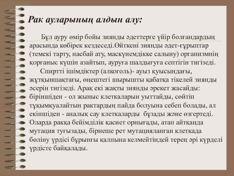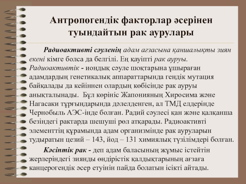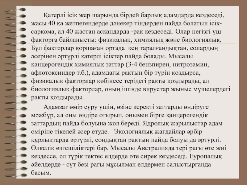 Слайд 1Тақырыбы: Рак ауруының өршуіне әкелетін антропогендік факторға сипатта беріңіз