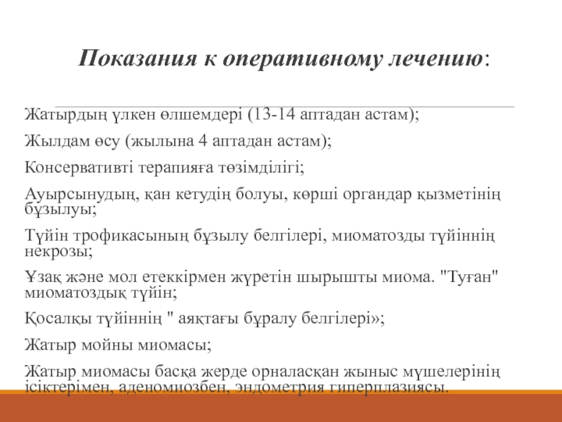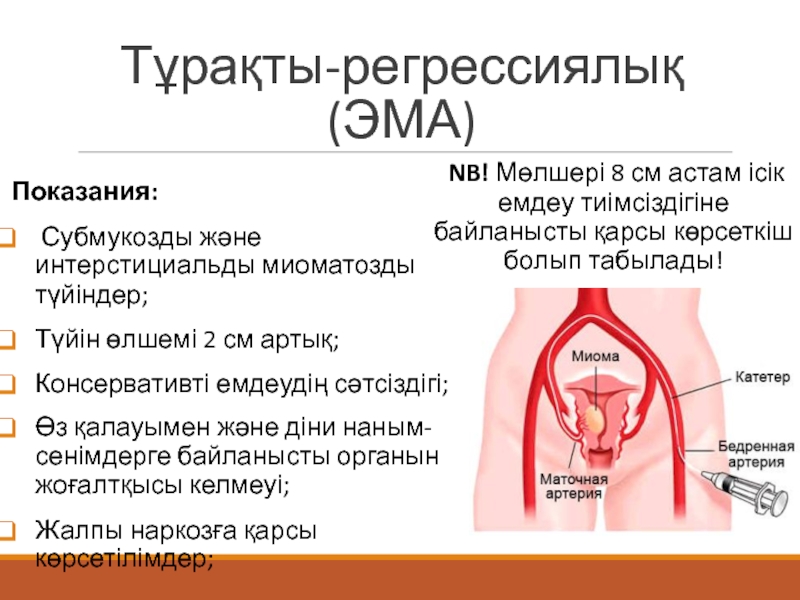 NB! Мөлшері 8 см астам ісік емдеу тиімсіздігіне байланысты қарсы көрсеткіш болып табылады!