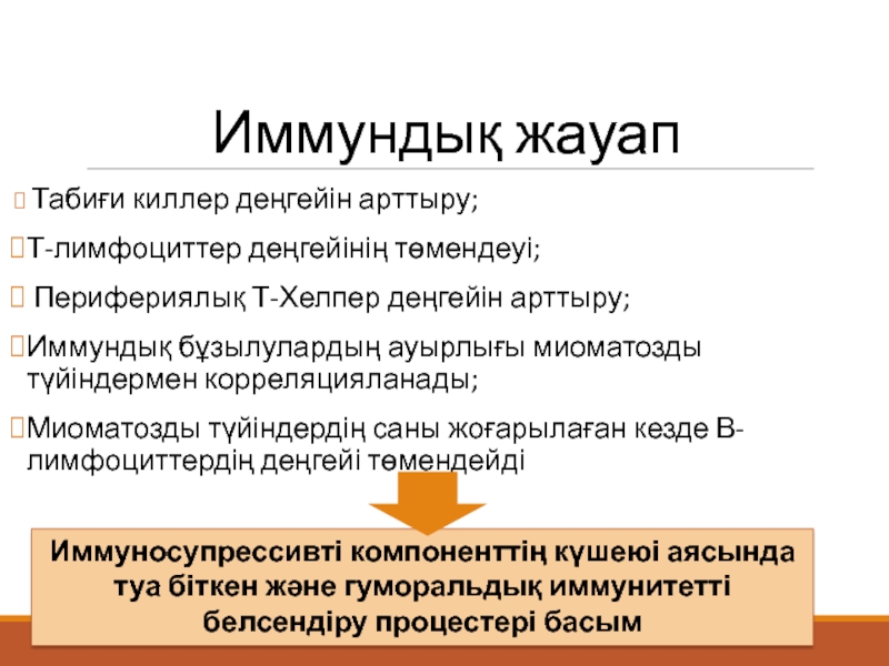 Иммуносупрессивті компоненттің күшеюі аясында туа біткен және гуморальдық иммунитетті белсендіру процестері басым