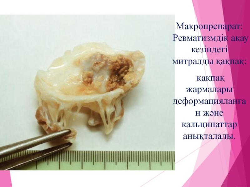 Слайд 7Макропрепарат: Ревматизмдік ақау кезіндегі митралды қақпақ: