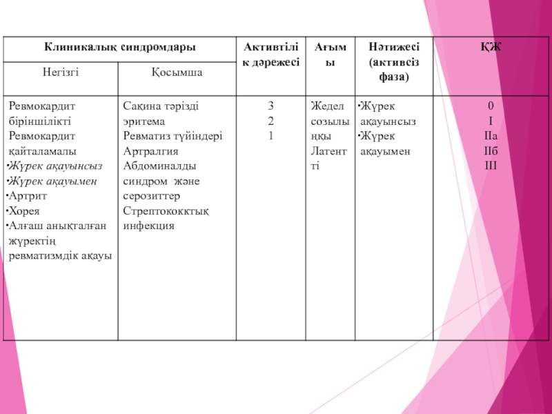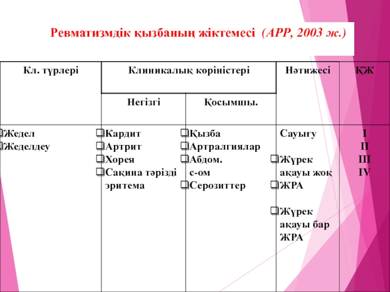 Слайд 14Ревматизмдік қызбаның жіктемесі (АРР, 2003 ж.)