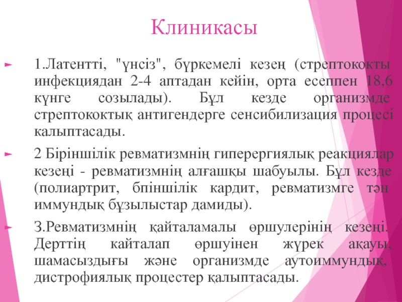 Слайд 47Ревматизм кезінде клиникалық көрінісі қанша уақыттан кейін көрінеді?
