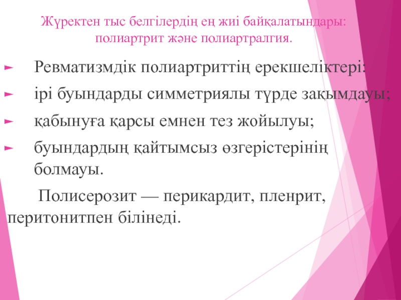 Полисерозит — перикардит, пленрит, перитонитпен білінеді.