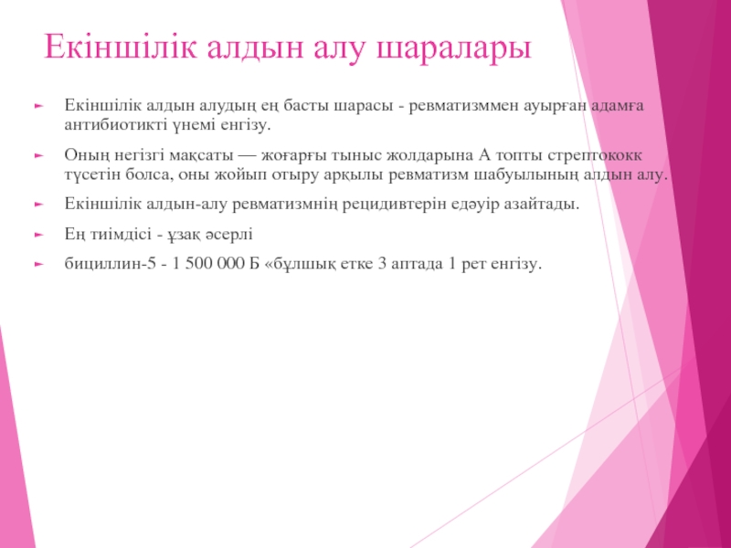 ревматизм өршуінің екіншілік алдын алу шарасын жүзеге асыру.