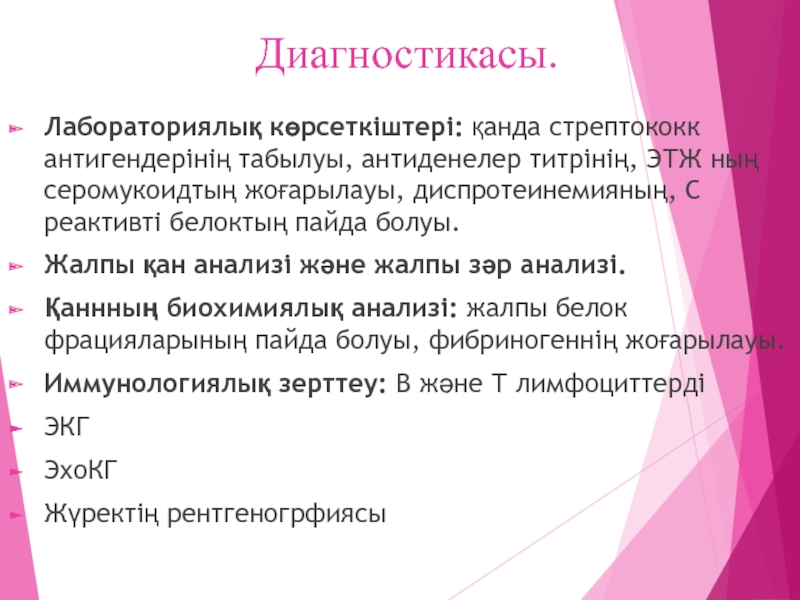 болуы және стрептококтық антиденелер титрінің биіктігі.