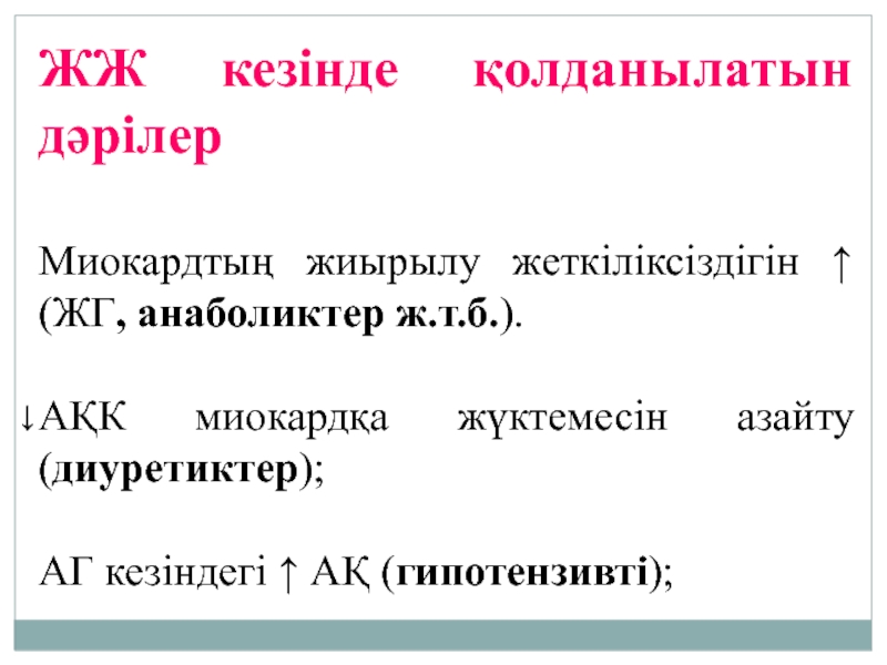Слайд 15ЖЖ кезінде қолданылатын дәрілер