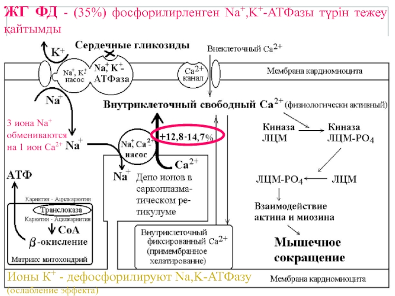 Слайд 19ЖГ ФД - (35%) фосфорилирленген Nа+,K+-ATФазы түрін тежеу қайтымды