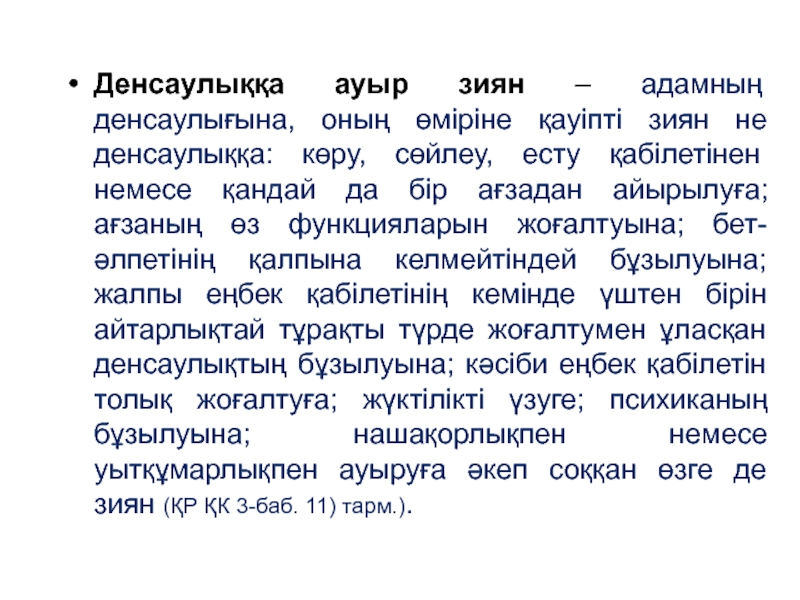 Слайд 8Денсаулыққа ауыр зиян – адамның денсаулығына, оның өміріне қауіпті зиян