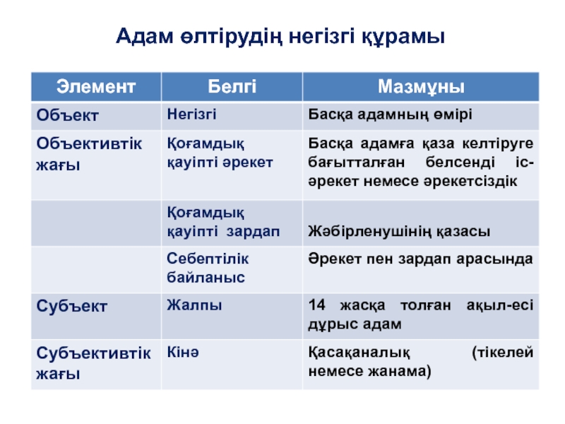 Слайд 5Адам өлтірудің сараланған құрамдары
