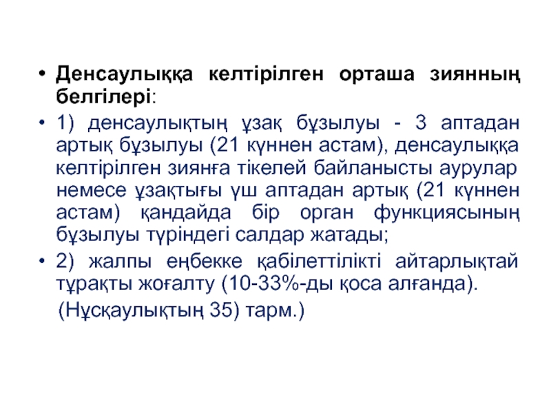 Слайд 10Денсаулыққа келтірілген орташа зиянның белгілері: