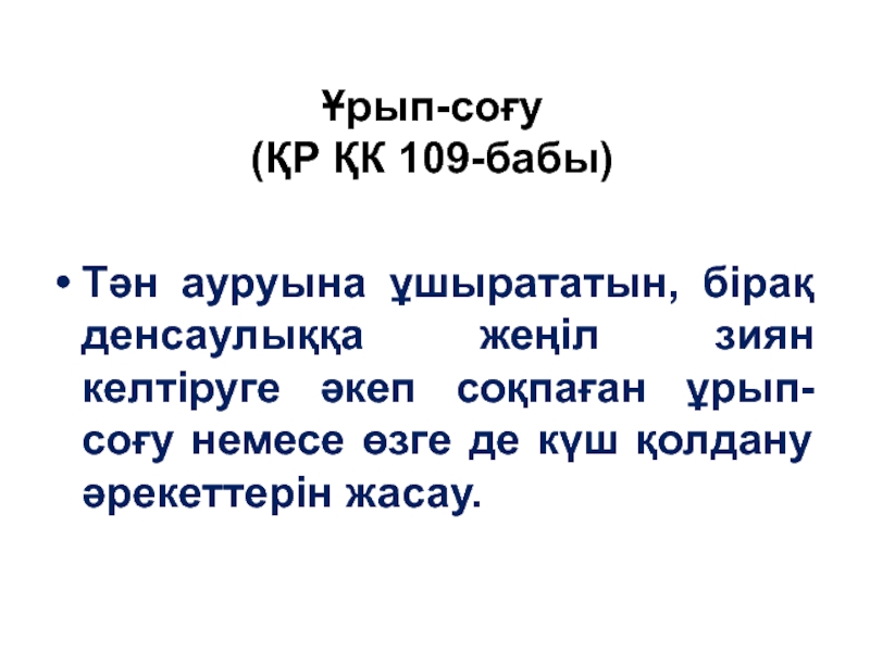 Слайд 7Денсаулыққа зиян келтіру – ағзаның (тіннің) анатомиялық тұтастығының (дене жарақаттары)