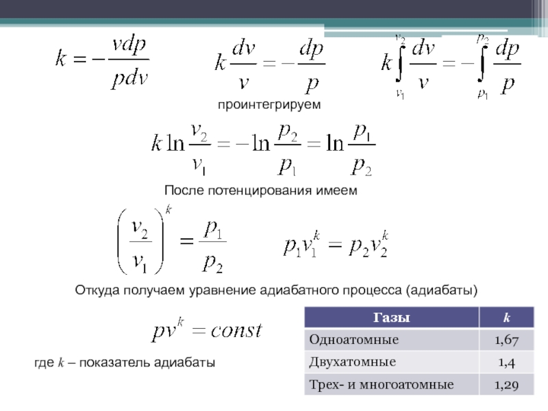 Откуда получаем уравнение адиабатного процесса (адиабаты)