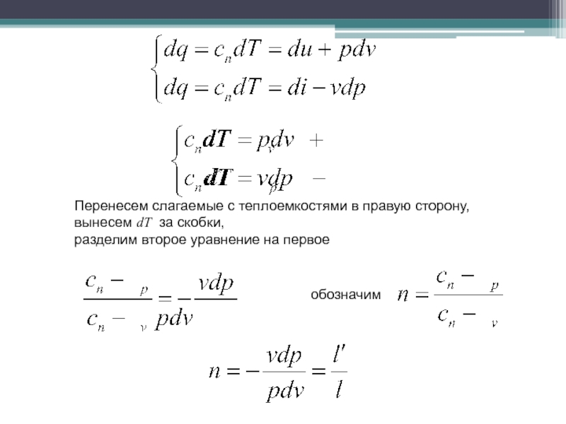 Эти процессы называются политропными и характеризуются постоянством теплоемкости в