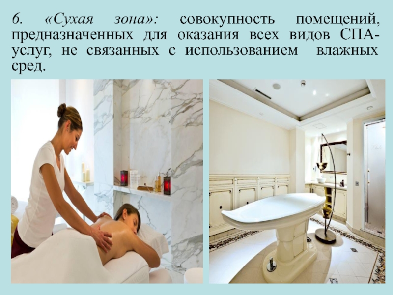 оказания СПА-услуг, как минимум, зону релаксации, «влажную» зону, «сухую» зону,