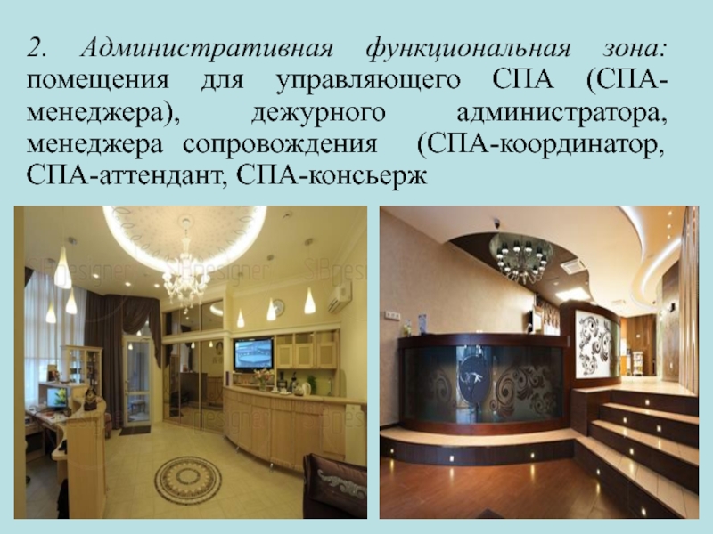 Слайд 112. Административная функциональная зона: помещения для управляющего СПА (СПА-менеджера), дежурного