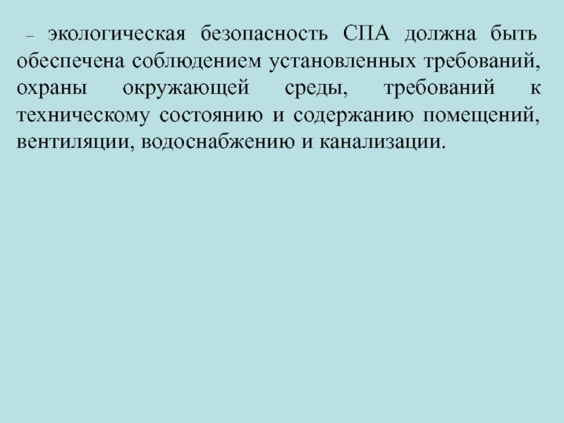 Слайд 35 – экологическая безопасность СПА должна быть обеспечена соблюдением установленных