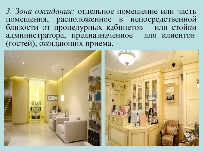 Слайд 133. Зона ожидания: отдельное помещение или часть помещения, расположенное в