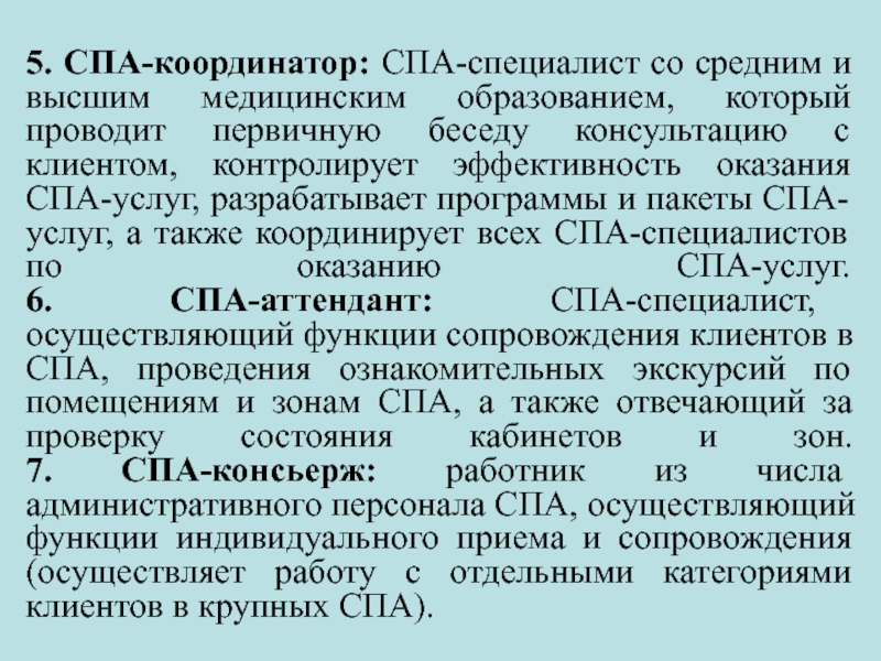 Слайд 295. СПА-координатор: СПА-специалист со средним и высшим медицинским образованием, который