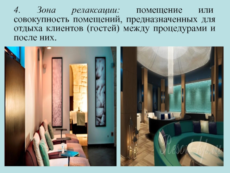 Слайд 154. Зона релаксации: помещение или совокупность помещений, предназначенных для отдыха