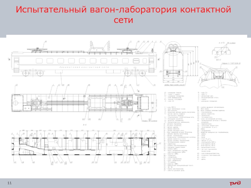 Слайд 11Испытательный вагон-лаборатория контактной сети