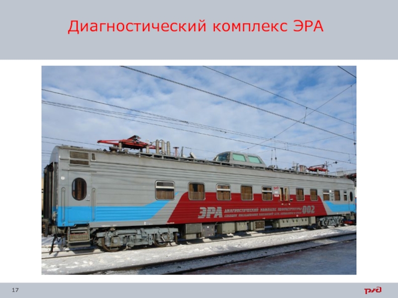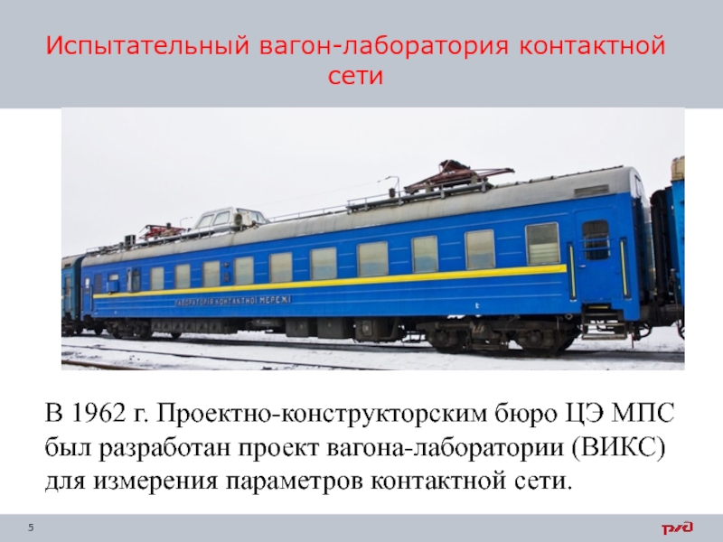 Слайд 5Испытательный вагон-лаборатория контактной сети