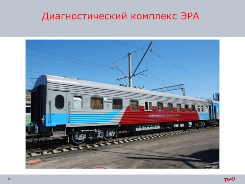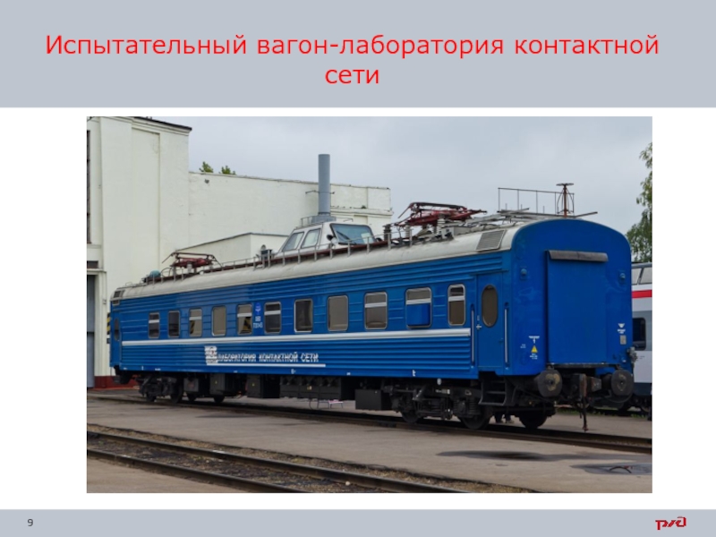 Слайд 9Испытательный вагон-лаборатория контактной сети