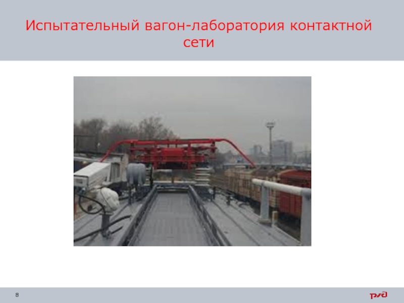 Слайд 8Испытательный вагон-лаборатория контактной сети