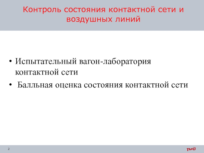 Контроль состояния контактной сети и воздушных линийИспытательный вагон-лаборатория контактной сети Балльная оценка состояния контактной сети